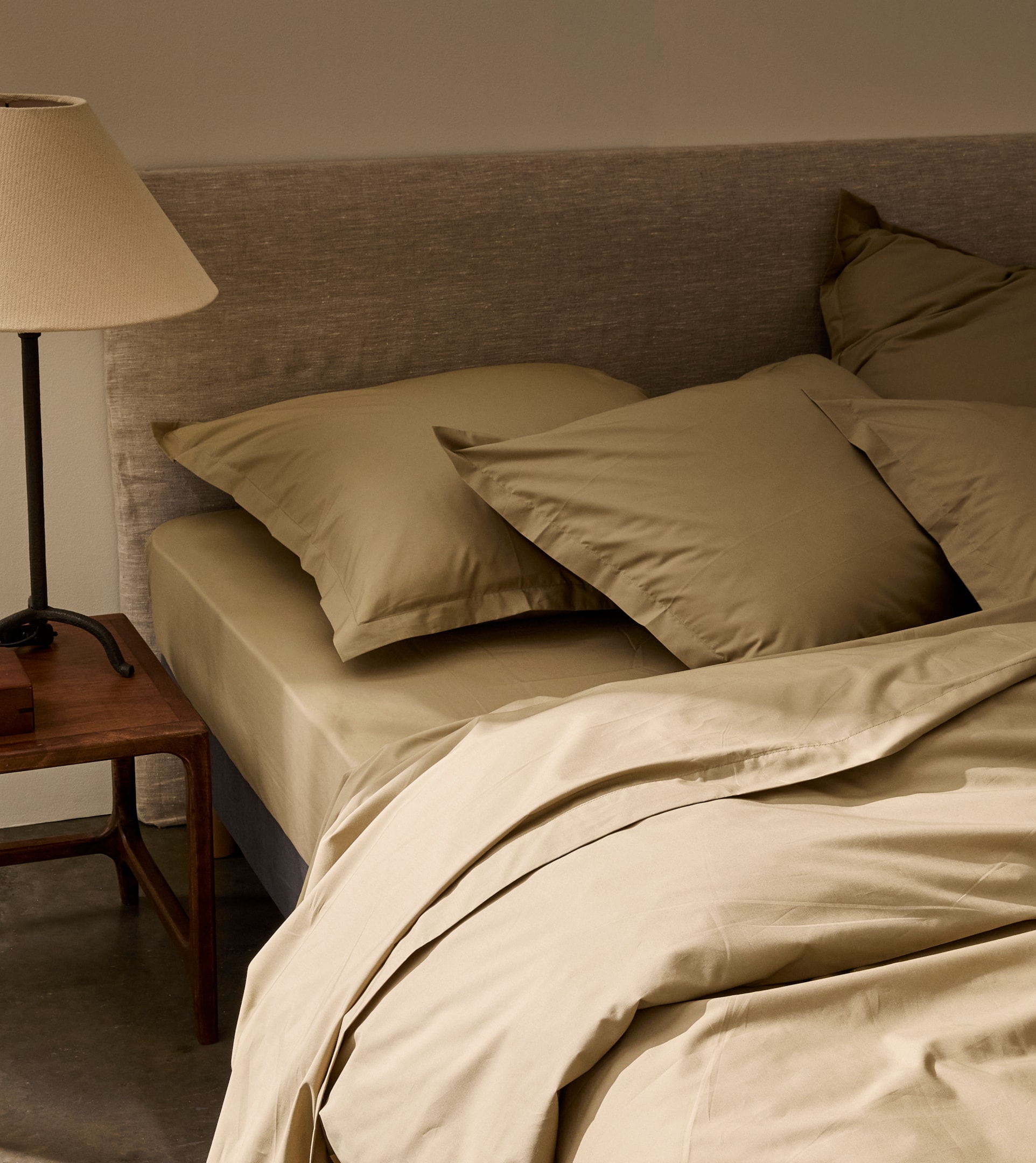 Coton percale : tissage dense, surface mate, effet frais au toucher.