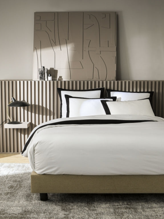 Toute en douceur(s), notre parure de lit en satin de coton est confectionnée dans les Vosges à partir de fibres de coton ultra-longues pour une qualité exceptionnelle de 200 fils / cm². Avec sa housse de couette contrastée et ses taies d’oreillers aux bordures colorées, elle fait souffler un vent de modernité jusque dans votre lit. Pour celles et ceux qui voudraient changer du blanc frais ou de notre greige iconique.